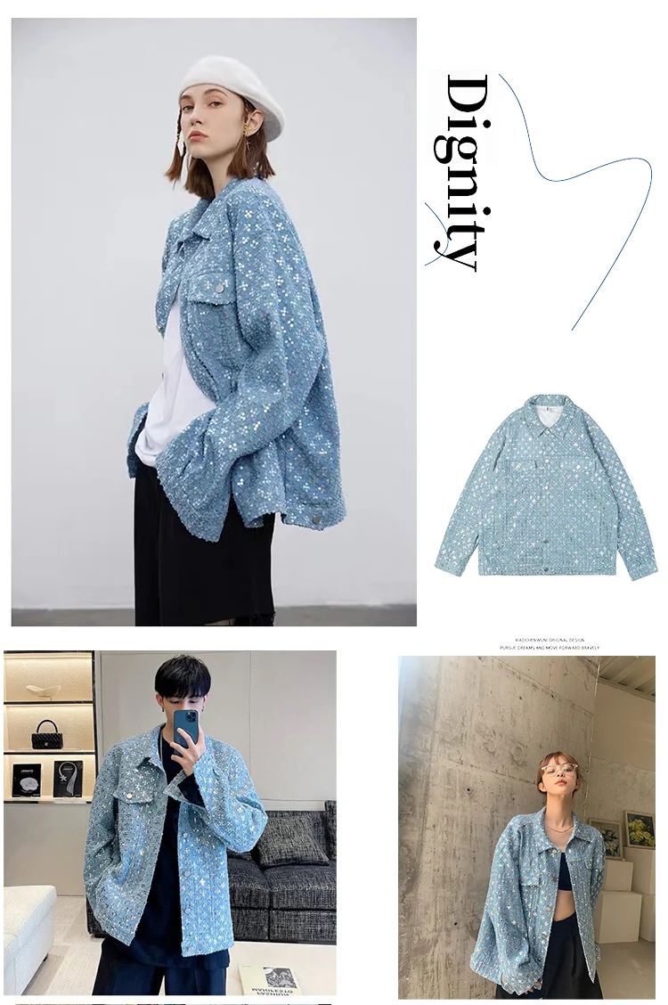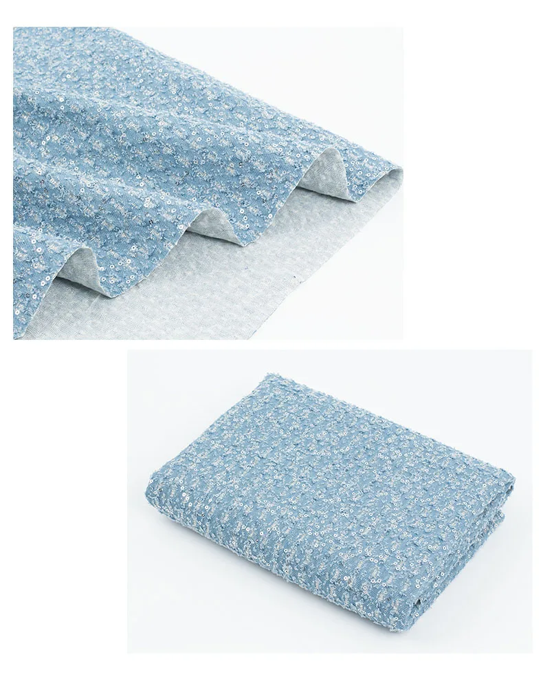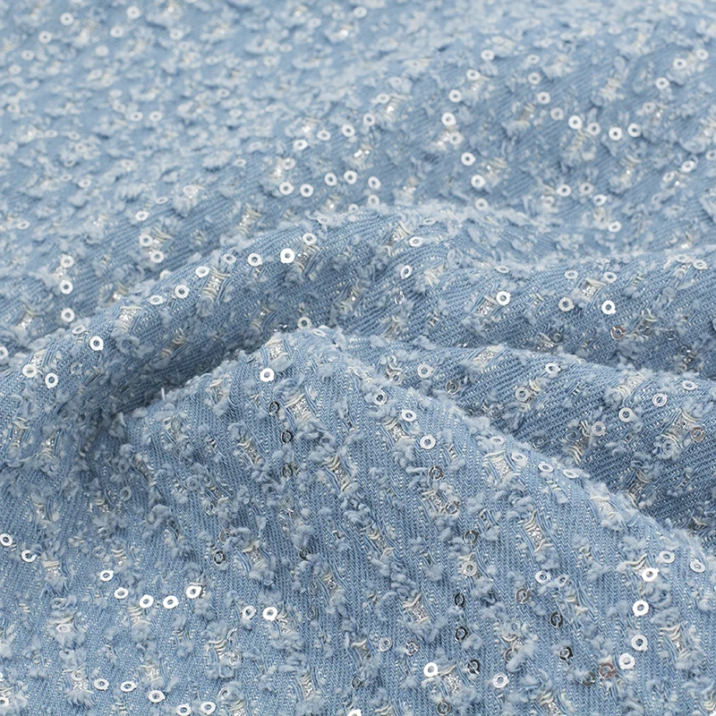 Blue Sequin Denim Fabric Fashion Designer Fabric Dilapidated Pure Cotton Washed Thickened Denim Cloth,DIY Manual Material