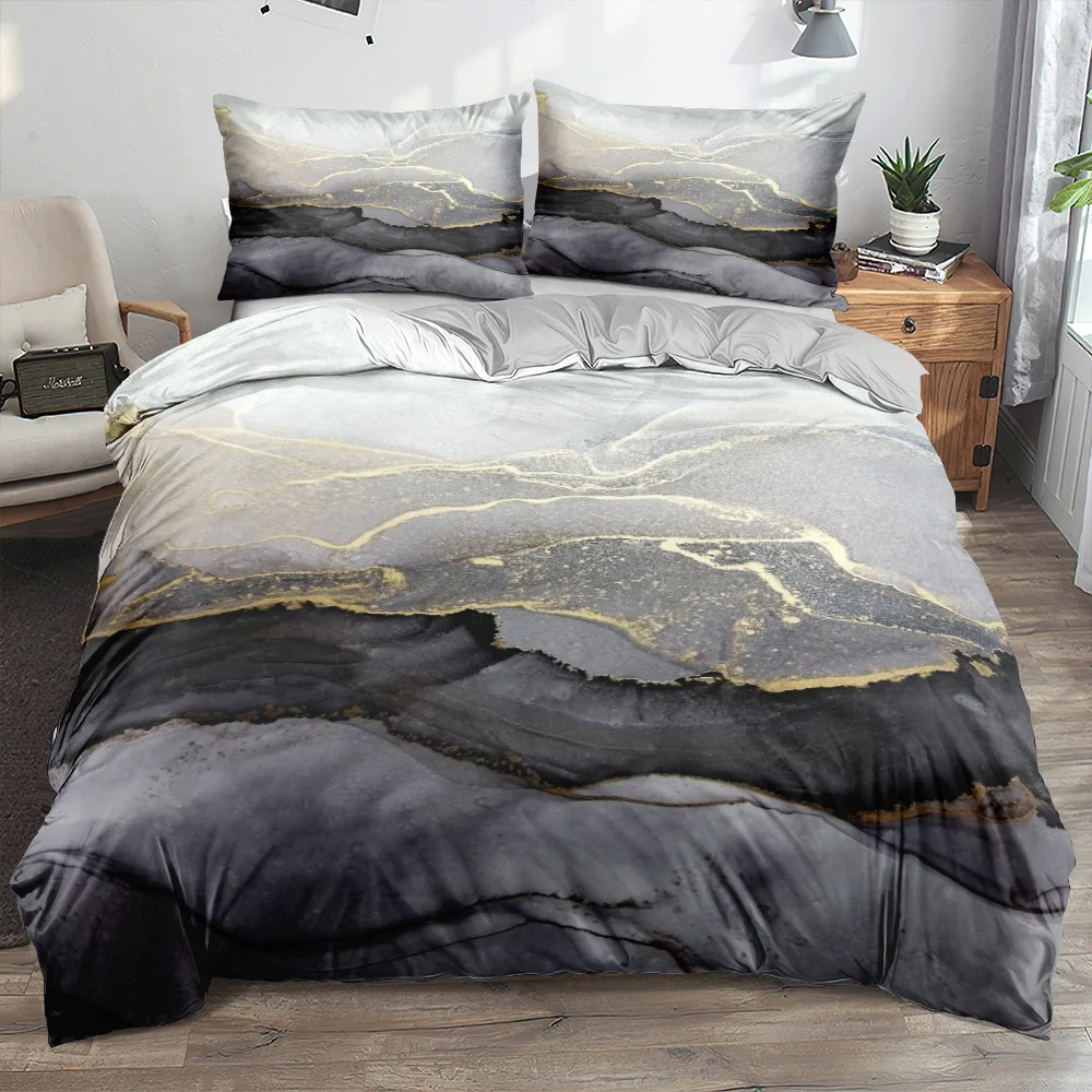 Classic 3D Marble Quilt Cover Set Bedding Sets Comforter Covers Pillowcases 3-Piece Duvet Cover Linens Bed 140x200 Bedspreads