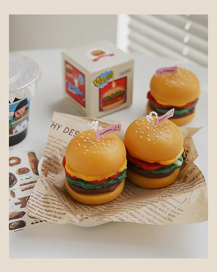 Handmade Birthday Candles with Burger-inspired Designs and Scents