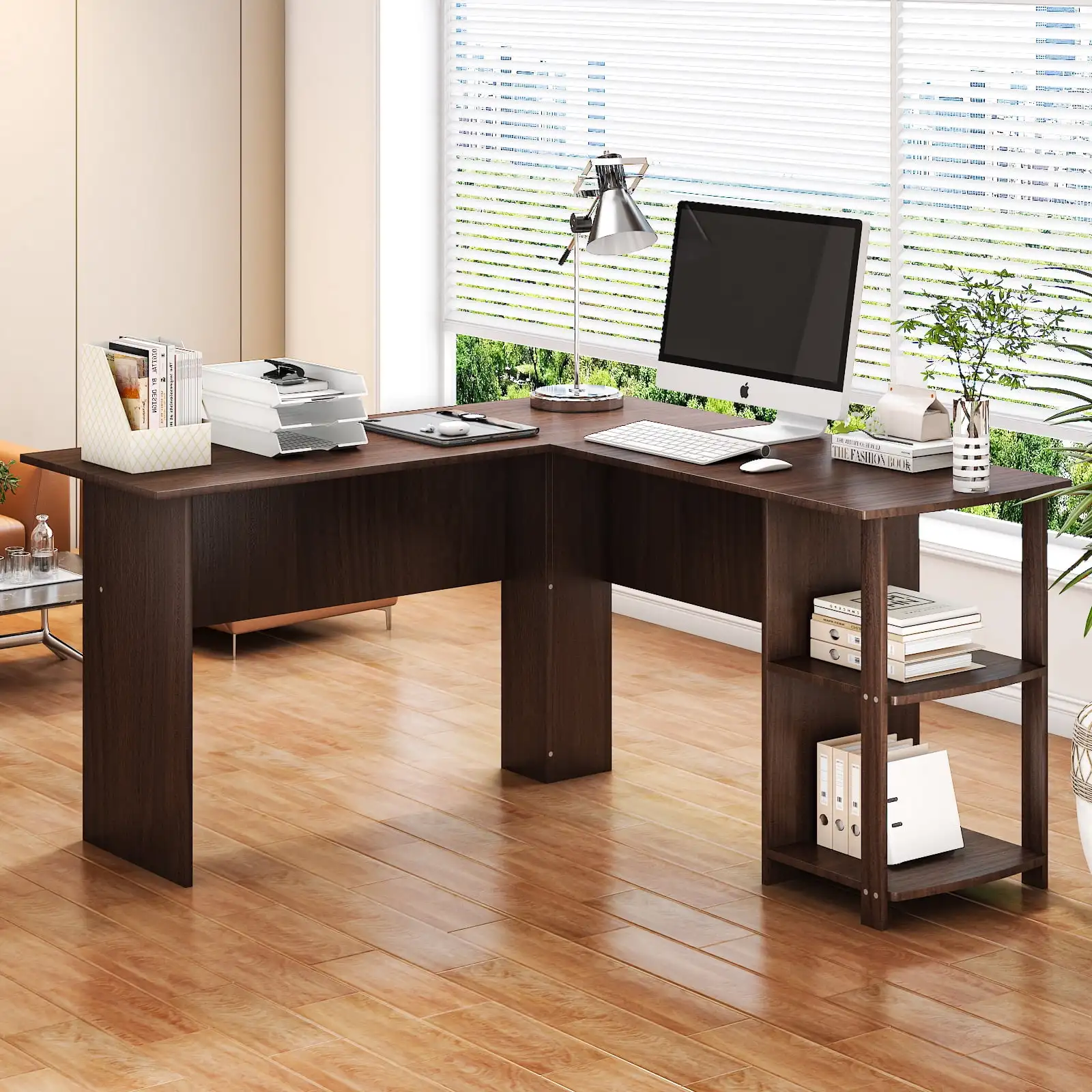 L-Shaped Computer Desk Workstation Laptop PC Table Shelves Office Furniture Dark Brown