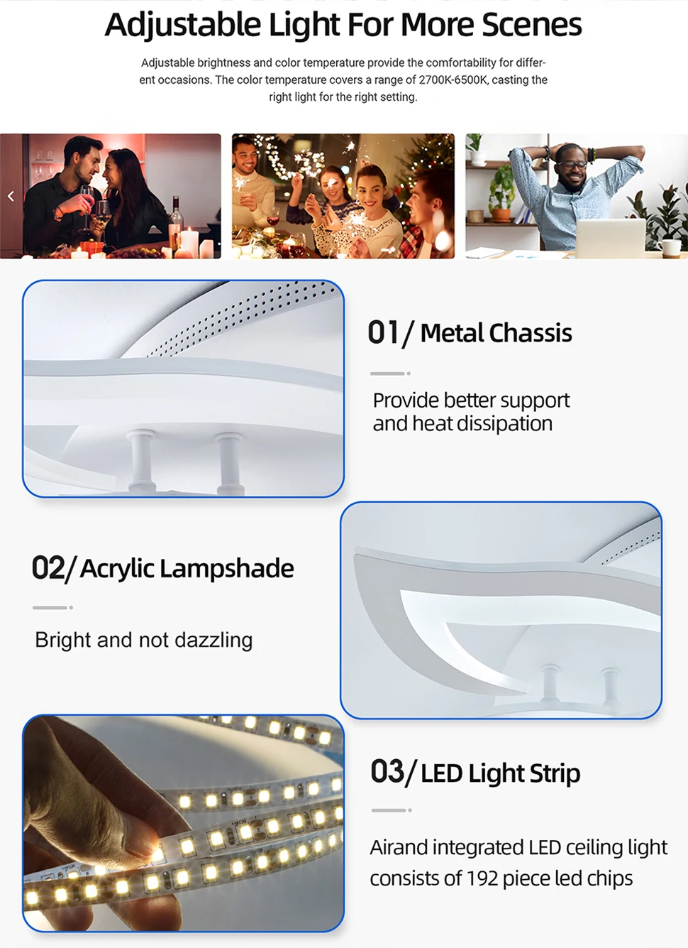 High-quality acrylic, high temperature resistance and good light transmittance, high-quality LED light source, energy saving.