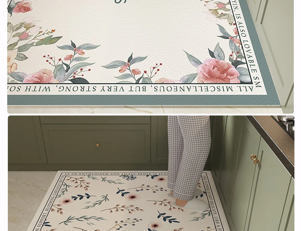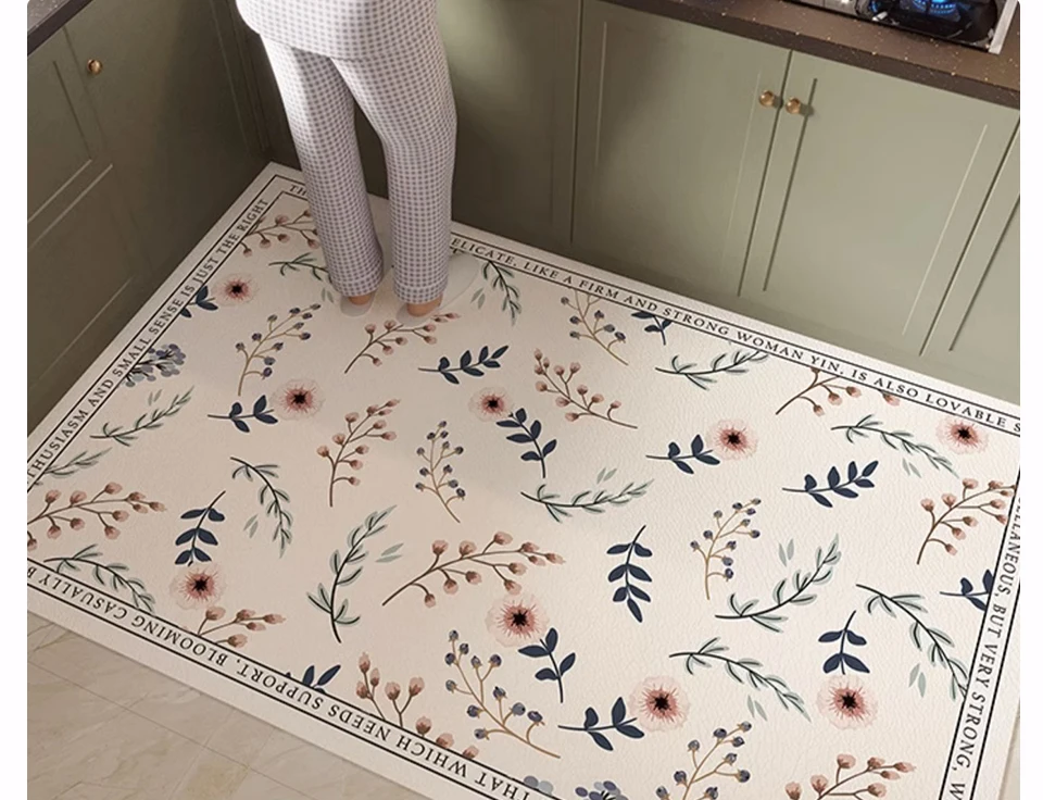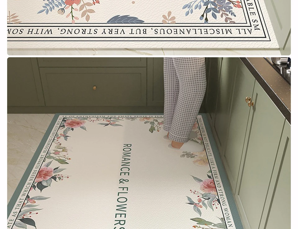 Rug for Kitchen Large Carpet Waterproof Floor Mat Pvc Leather Non-slip Foot Mats Oil-proof Flower Elegant Home Decoration Rugs