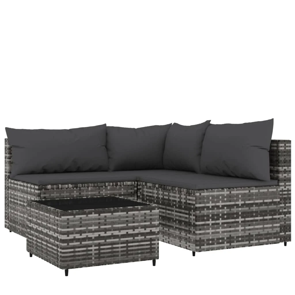 vidaXL 4 Piece Patio Lounge Set with Cushions Gray Poly Rattan Outdoor furniture/garden furniture set